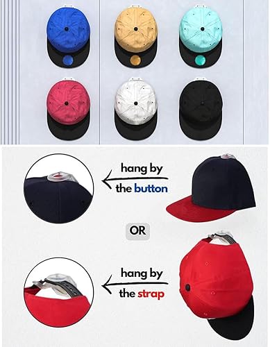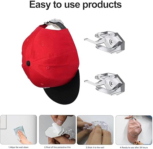 Rakiuty Crochets de Chapeaux,Crochet à Chapeau,Crochets de Chapeaux Support Mural,Porte de Casquette,pour Crochet de Casquette Organisateur pour Porte,Mur,6 Pièces (Transparent)