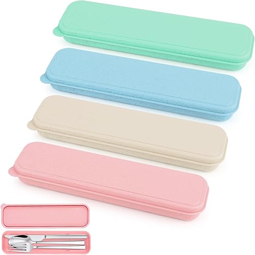4 Pièces Couverts Portable de Voyage, Étui de Couverts Réutilisable, Boîte de Rangement pour Couverts, Étui de Rangement pour Ustensiles de Voyage, Ustensiles de Camping, pour Travail Voyage l'École