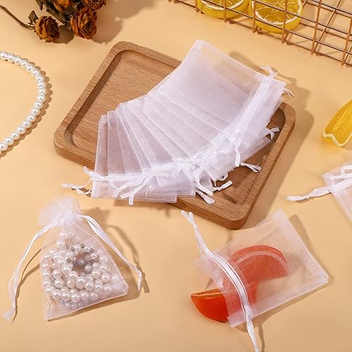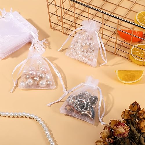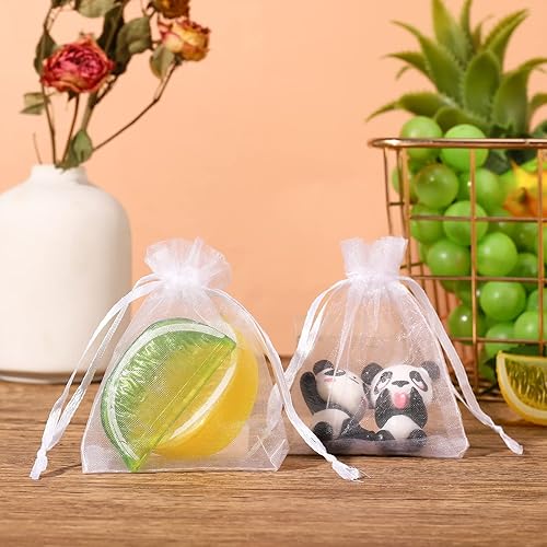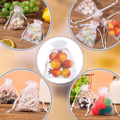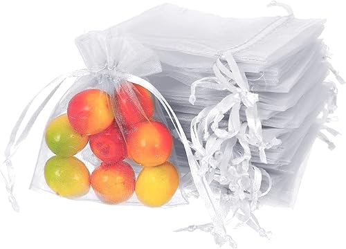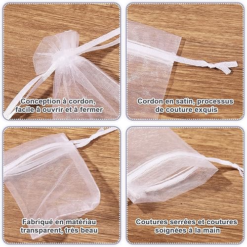 Bohoman 100Pcs Organza Gift Bags, 7 X 9 cm Cadeau Sacs À Cordon Pochettes sachets en organza sachets de lavande pour Fête De Anniversaire Coquillage Bonbons Chocolat Maille Pochettes (Blanc)