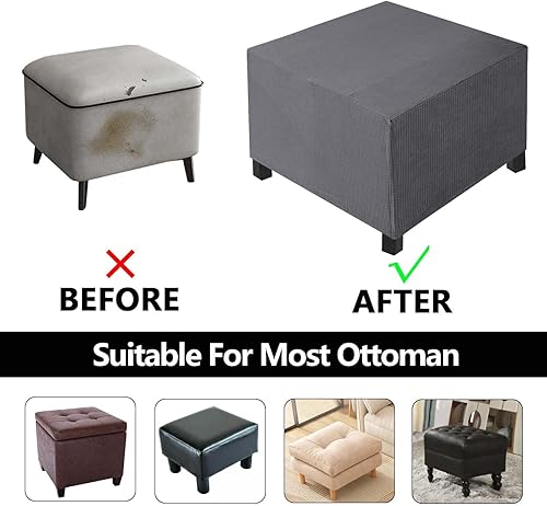 AQIGR Housse de Pouf Carré 45x45 40x40 50x50 60x60 38x38 Extensible Housse de Repose-Pieds Anti-dérapante Respirante à Fond élastique(Gris,L 45 x W 45xH 40cm)