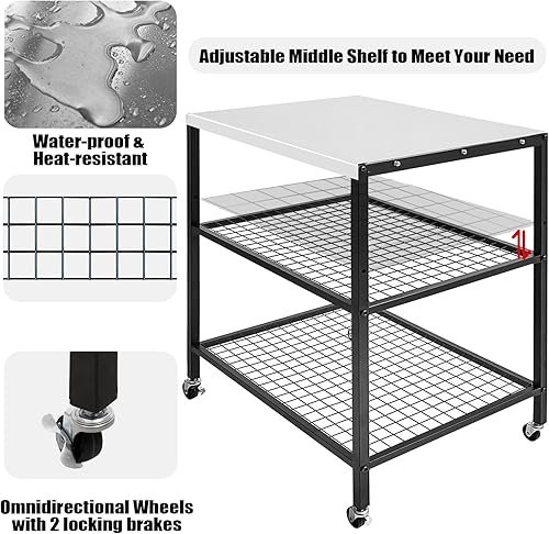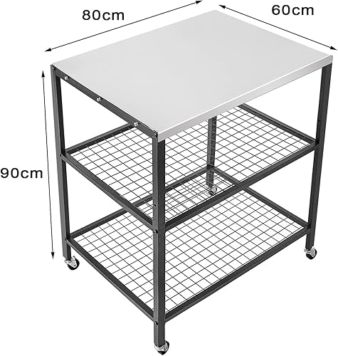 Support de four à pizza d'extérieur pour barbecue - Table de four à pizza en acier inoxydable - Table sur roulettes - Table de préparation des aliments - Support de barbecue pour cuisine, terrasse,