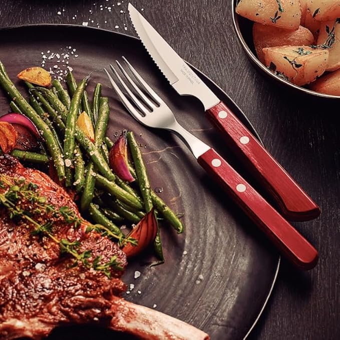 Tramontina - Fourchette rouge Gaucho 21 cm.Inox et technobois. X 12