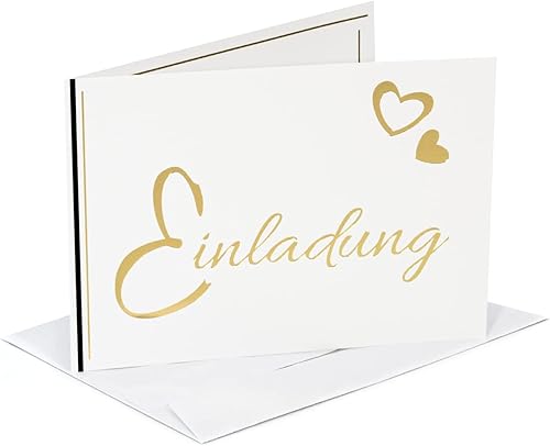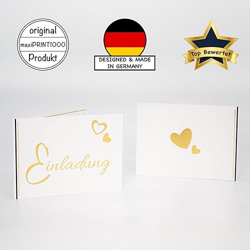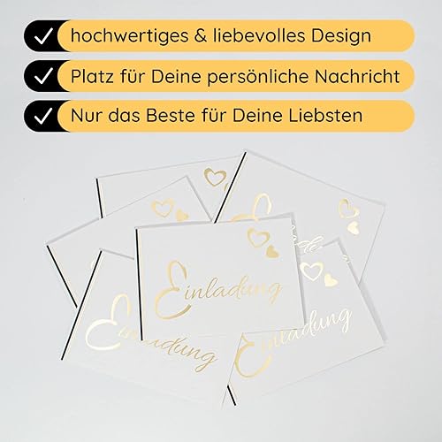 Lot de 1, 5, 10, 20, 50 cartes d'invitation avec traitement doré exclusif - Personnalisable - Pour anniversaire, cérémonie, confirmation, mariage, communion, invitations de mariage, invitations