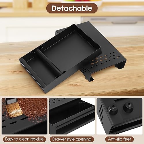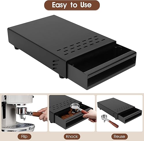 Wakects Boîte à Café en Poudre, Knock Box Poubelle Café Tiroir en Caoutchouc en Acier Inoxydable avec Poignée pour Café 7,1 x 11 x 2 in(noir)