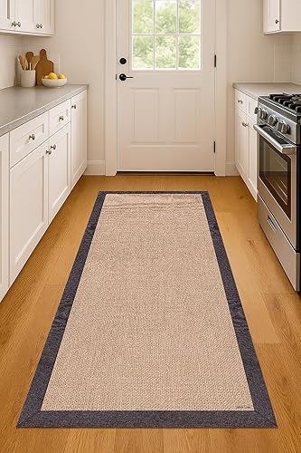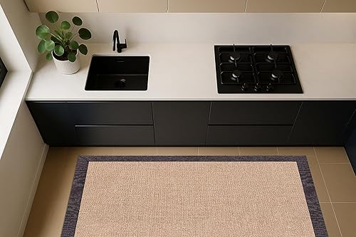 DobleUve Estudio Tapis Vinyle imprimé Jute Bordure | Brum | 80x200 cm | Tapis Cuisine | Tapis de Salon Antidérapant Antifongique Ignifuge | Tapis Enfants | Tapis Bain PVC | Tapis PVC