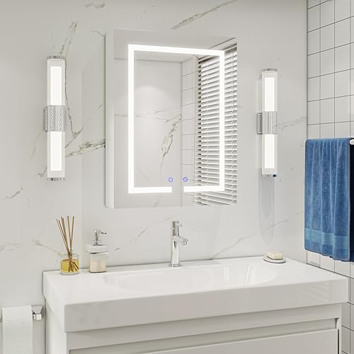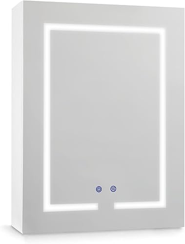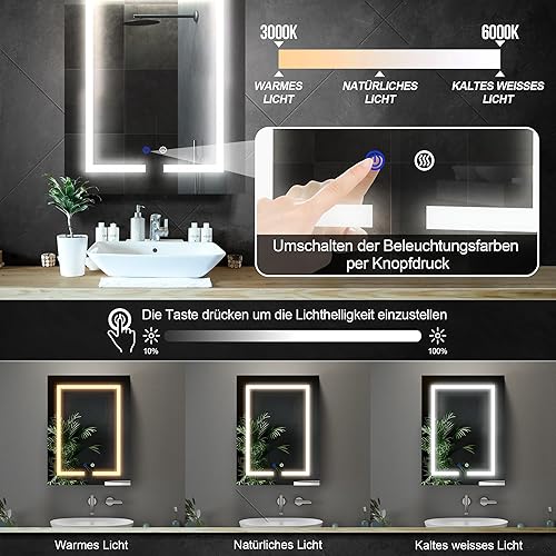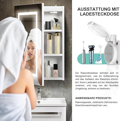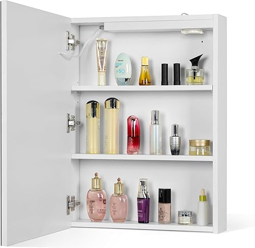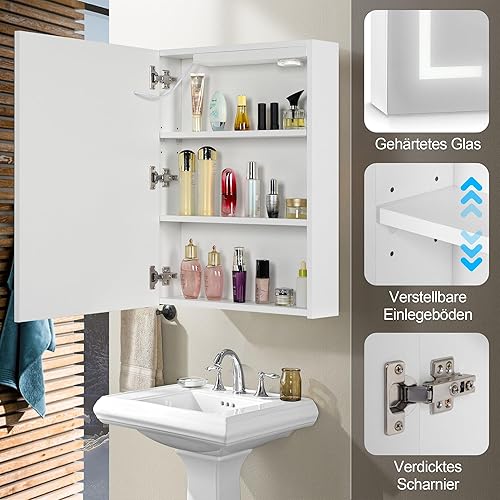 AxisFurn Armoire de salle de bain avec miroir et éclairage LED, armoire à miroir avec étagère réglable, porte droite, anti-buée, 50 x 66 cm, blanche