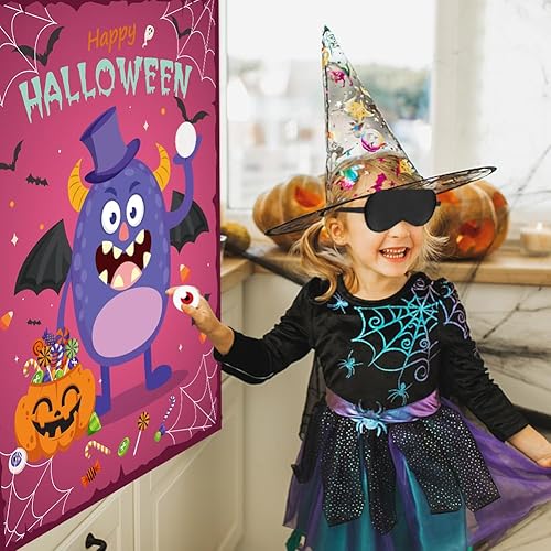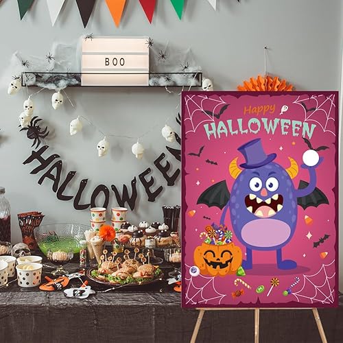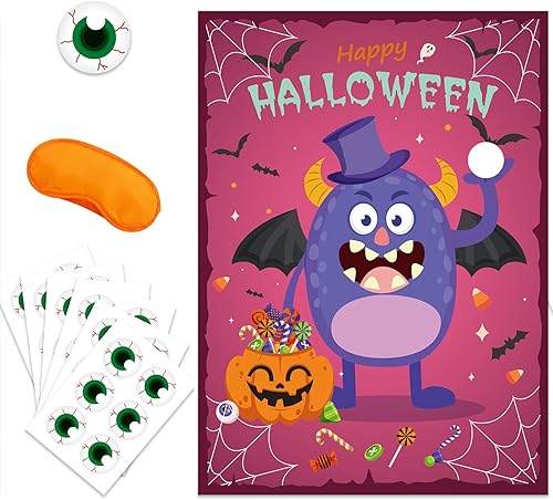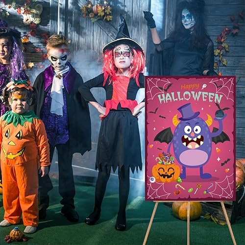 Jeux d'halloween Jeux de Fête d'halloween pour Enfants, Affiche de Dessin Animé d'halloween Autocollant pour Les Yeux Bandés, Jeu de Fête d'halloween pour Enfants école Salle (Style Monstre)