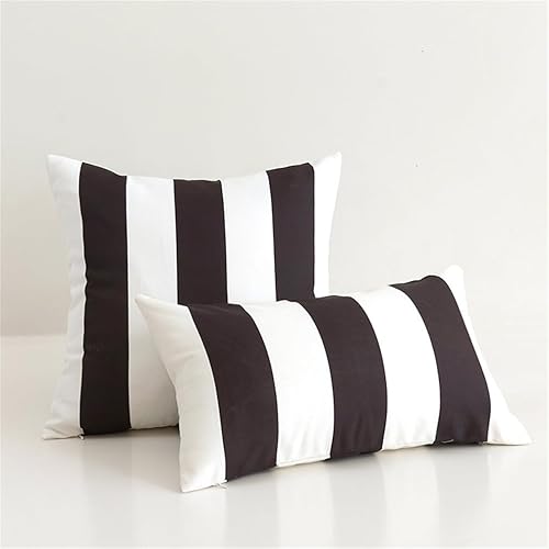 Newliky Imperméable Housse Coussin 30x50 cm Lot de 2 Extérieur Housses de Coussin Polyester Géométriques Moderne Taie d'oreiller Concise Décoration pour Canapé Salon Jardin Balcon Rayé Noir