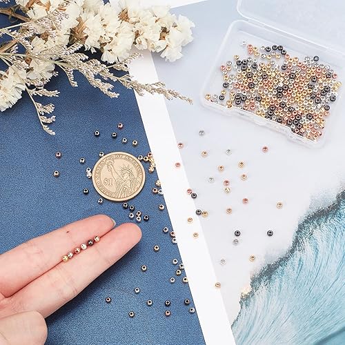 PH PandaHall 6 couleurs 360pcs Plaqué or 14 K en laiton Perles à Écraser Mélangées Rondelles Tubes à Écraser Entretoise de Perles 3mm Perles d'Espacement pour Bracelet Collier Boucle D'oreille Bijoux