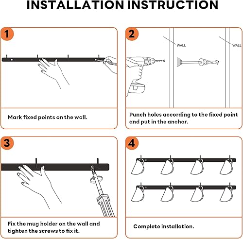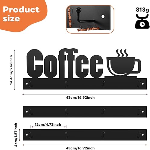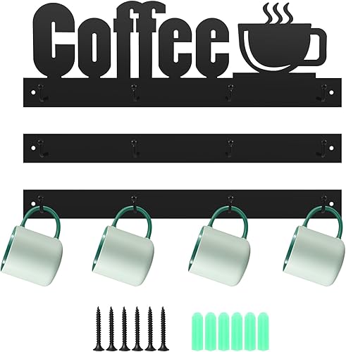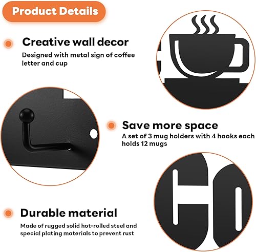 NIZEAMI Lot de 3 porte-gobelets muraux pour tasses à café, 12 crochets pour tasses murales, pour cuisine, salle de pause, café, coin café