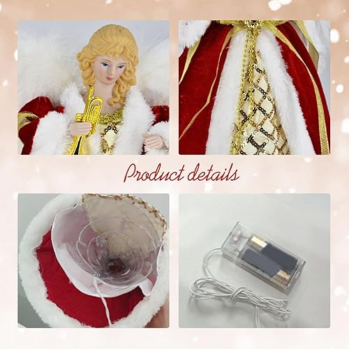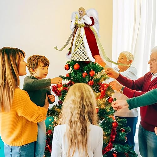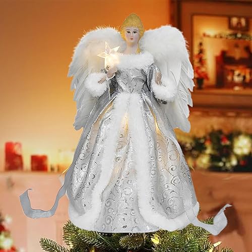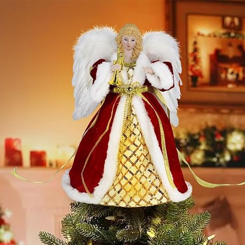 Ange De Noël pour Sapin, Ange pour Cime De Sapin De Noël avec Lumière LED, Sapin Arbre Noël Ange avec Ailes pour Les Décorations De Fête De Noël