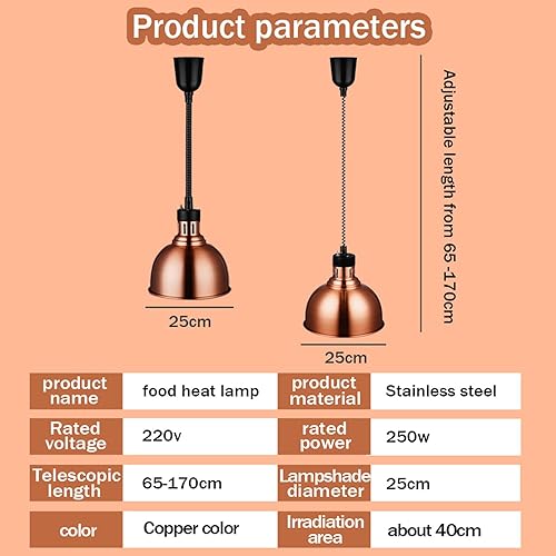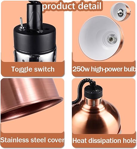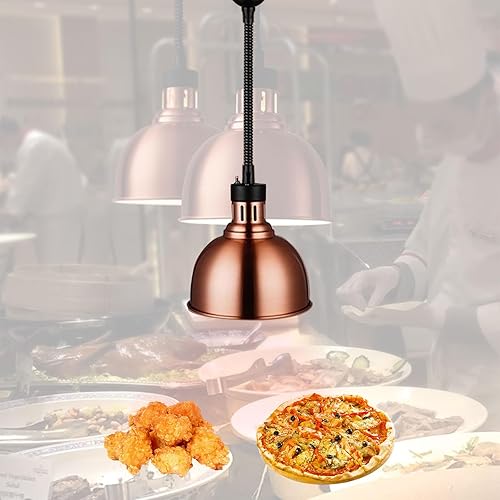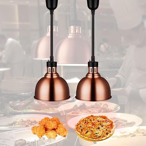 Lampe Chauffante de Cuisine, Lampe Chauffe-Plats Buffet avec Ampoule 250w, Lampe Infrarouge Chauffante Restaurant pour Steak Pizza, Hauteur Réglable 65-170cm (2 pcs)