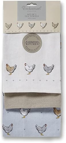 Cooksmart Lot de 3 torchons Farmers Kitchen, Coton, Bleu, 45 x 65cm