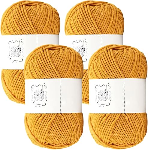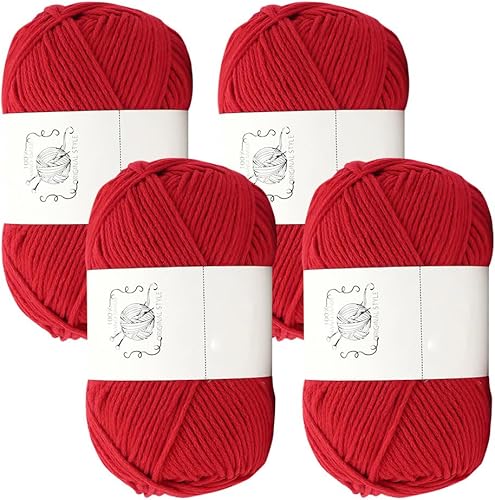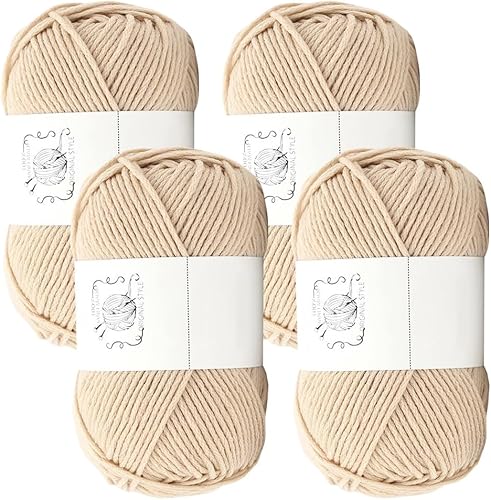Pelote de Coton épais, 4 Pcs de Fil Tricoter Doux pour Crochet, 400G/440M, Kit Laine Démarrage pour Tricot, Crochet, Artisanat