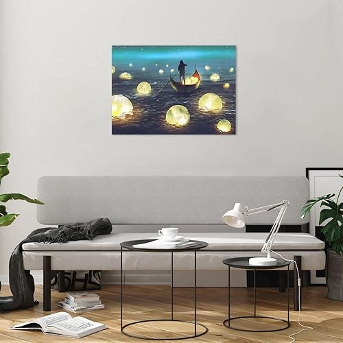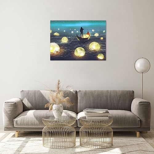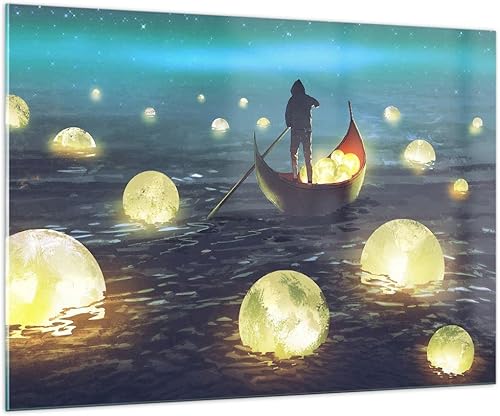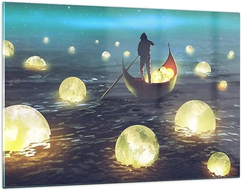 Moderne Impression sur Verre 100x70cm Image Tableau en Verre Decoration Murale bateau eau conte de fées Grand Tableaux Decoratifs Muraux Chambre Cuisine Horizontal Deco Cadre Salon Art GAA100x70-4002