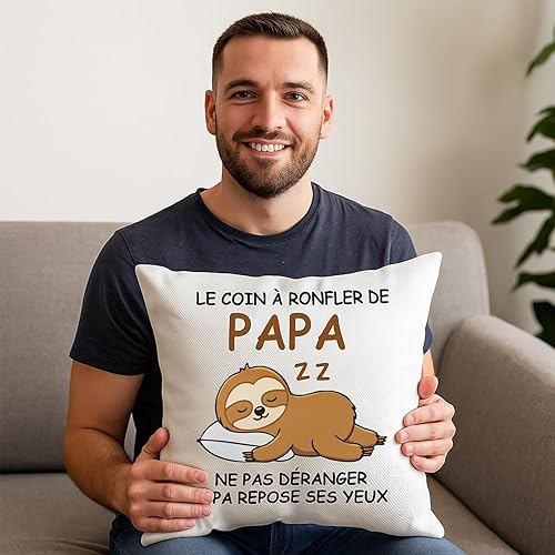 FLYWIND Idée Cadeau d'anniversaire pour Grand-Pères, Cadeau Papi Housse de Coussin Décorative Personnalisé 45x45cm Paresseux pour Anniversaire Fête des Pères Noël