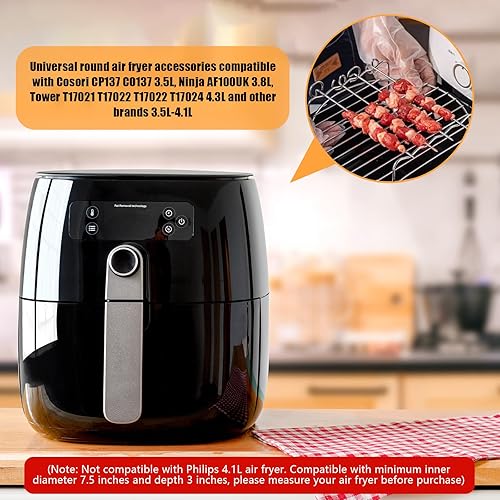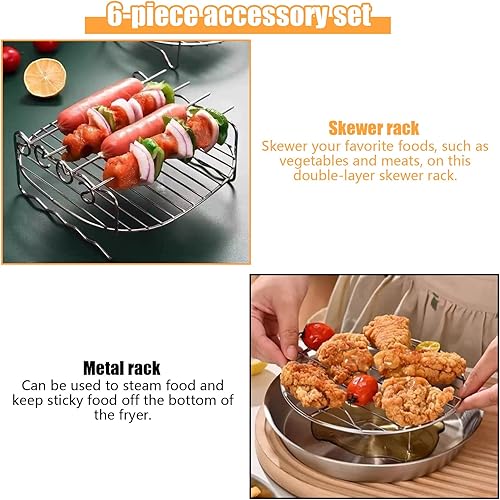 Jomdjmskes 2 Pcs Moule Air Fryer, Accessoires Air Fryer, Accessoires pour Friteuse en Acier Inoxydable Antiadhésif, Support Multifonction Double Couche avec Brochette, Grille de Cuisson Friteuses