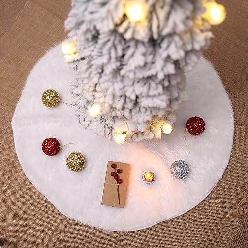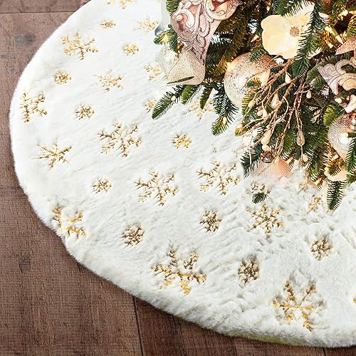 Lafunda Jupe de Sapin de Noël Ronde en Peluche Avec Paillettes - Couverture Flocon de Neige Tablier Ornemental pour Décoration du Nouvel An (Blanc, 38 cm)