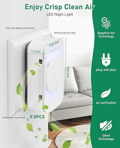 Purificateur d'Air, Dayear Mini Air Purifier Plug-in Negative Ion Purifier Purificateur Ioniseur d'Air pour Chambre/Maison/Salon/Chambre d’Animaux,3 modes d'éclairage LED,Purifier les Odeurs/4 Pack
