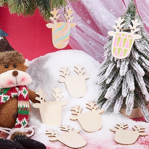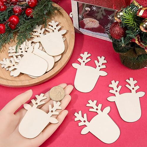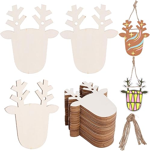 SUNNYCLUE 30 décoration à Suspendre en Bois en Forme de Tête de Cerf de Noël Breloques Décoratives en Bois Brut avec 30 embellissements en Ficelle de Jute Artisanat pour les Vacances Bricolage Fête Dé