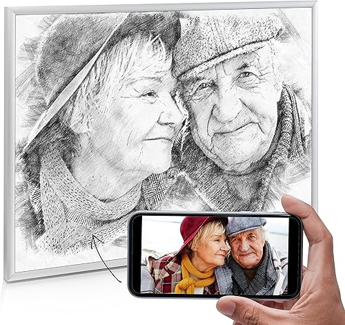 Votre Photo ou Votre Selfie dans Le Style d'un Dessin au Crayon (œuvre d'art numérique), sous Forme de fichier et de Poster, Mariage, Couples, bébé, Cadeau Photo, Enfants, Grands-Parents, Animaux…