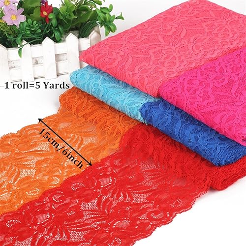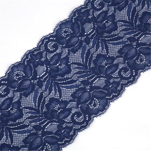 Ruban de dentelle florale en tulle extensible de 4.6 m de large et 15 cm de large pour la fabrication de bijoux, les emballages cadeaux, la décoration de fête de mariage (bleu marine)