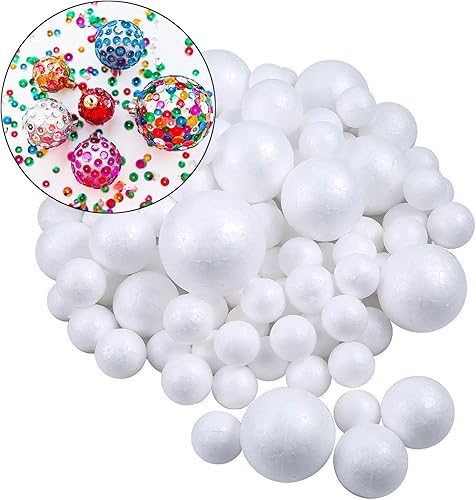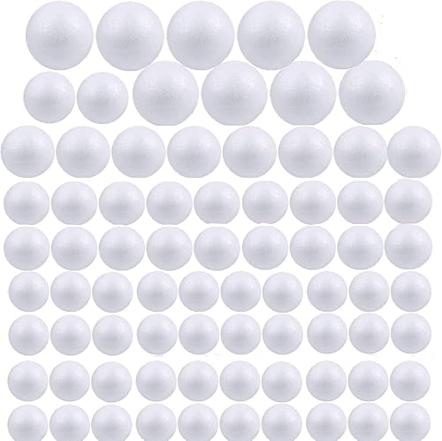 bluesees Lot de 80 boules en mousse de polystyrène 4 tailles pour loisirs créatifs, projets de maison et d'école