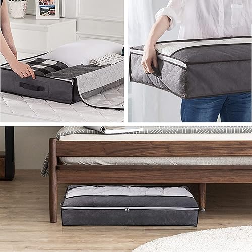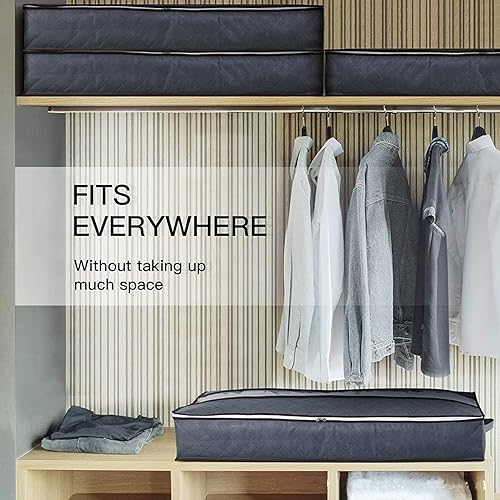 Owelth Sac de Rangement sous Lit Lot de 5, 90L Boite Rangement sous Lit Grande Non-Tisse, Pliable Organisateurs Sacs de Rangement Vetement pour Couette Édredons Couvertures Oreillers Jouets