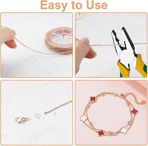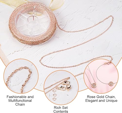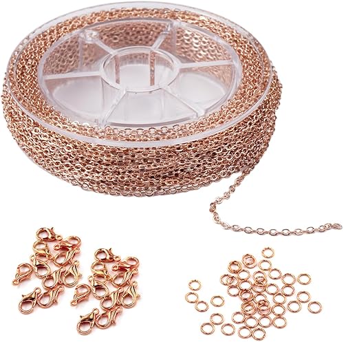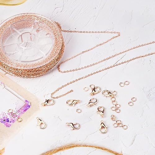 12 M Or Rose Chaine Bijoux Acier Inoxydable, Chaine pour Bijoux, Chaîne Au Mètre avec 30 Fermoirs de Homard et 100 Anneaux de Sautage, Chaine Fabrication Bijoux pour La Fabrication de Bijoux