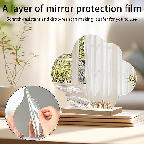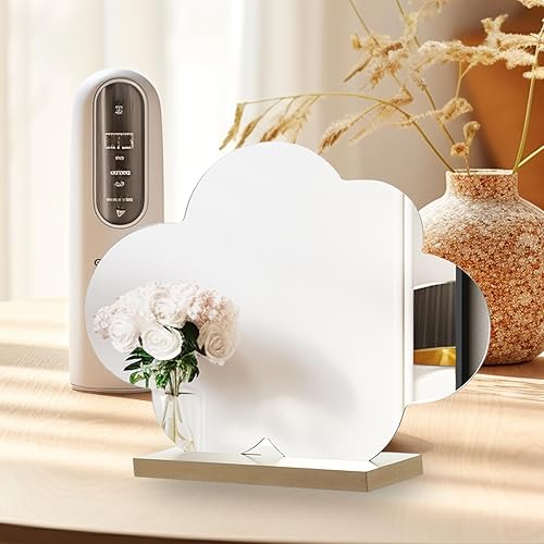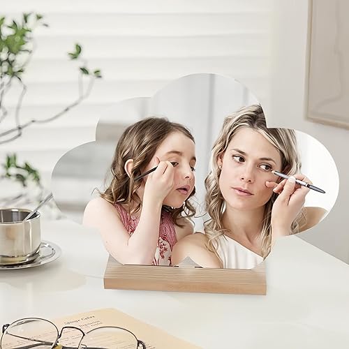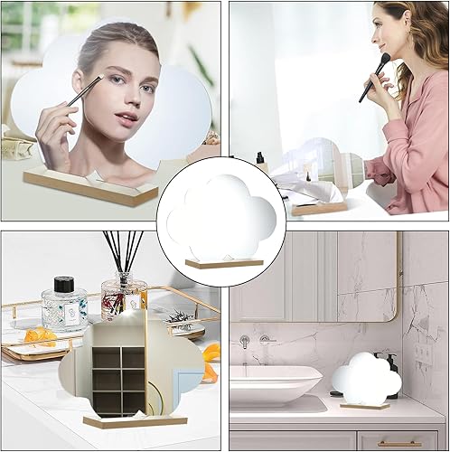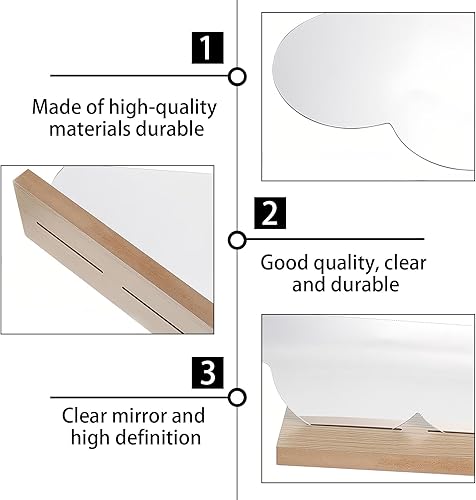 HERKINDNESS 2 Pièces Miroir Maquillage, Forme Irrégulière Petit Miroir, Acrylique sans Cadre Miroir Organique, Miroir de Table avec Base en Bois pour Chambre à Coucher, Hôtel