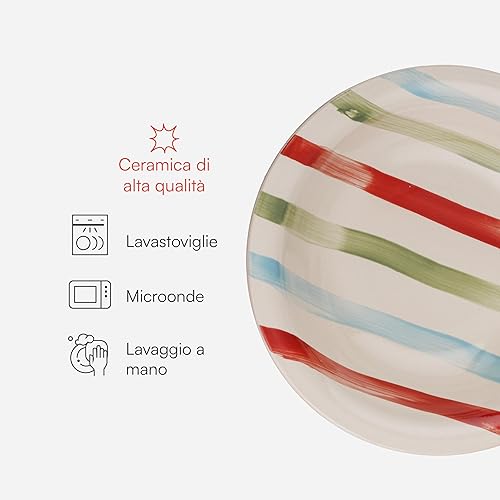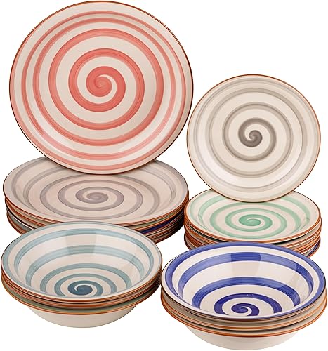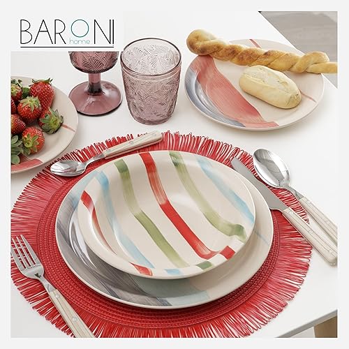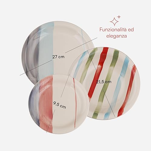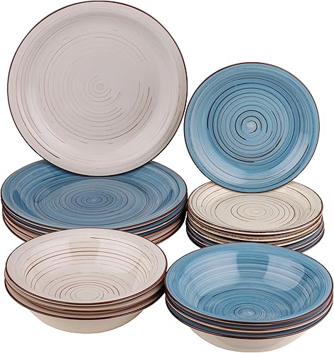 Baroni Home Servi de 18 assiettes en Céramique, service de table décoré pour 6 personnes, assiette creuse, assiette, fruits ou sucré, style bleu et gris