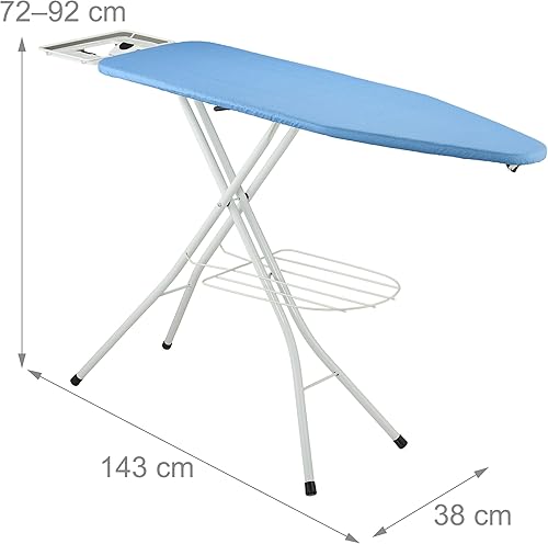 Relaxdays Table à Repasser, Pliable, Planche réglable en Hauteur, Plateau de Repassage L x P : env. 120 x 38 cm, Bleue