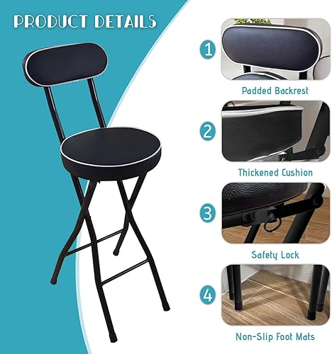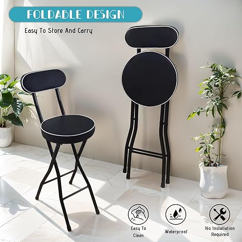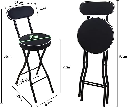 Tabouret Pliant Pour L'intérieur Et L'extérieur 50 55 60 65 70 75cm Tabouret De Bar Cuisine Portable Pour Adultes Tabouret de Comptoir Camping Bistrot Chaise de Salle À Manger Rembourré en PU(Black,65