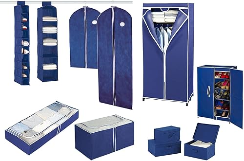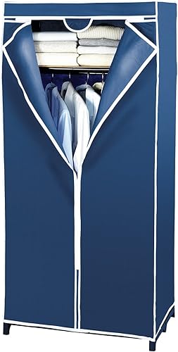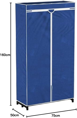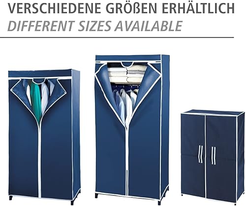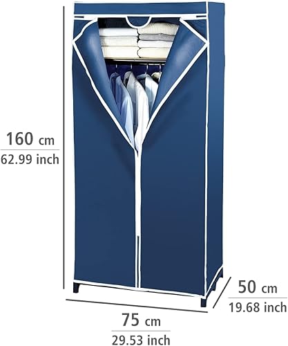 WENKO Armoire en Tissu Air | Penderie Stable en Tissu| avec étagère et Tringle | Fermeture éclair sur Toute la Hauteur |Structure métallique Robuste | Charge 10 kg | Polyester | 75x160x50 cm | Bleu