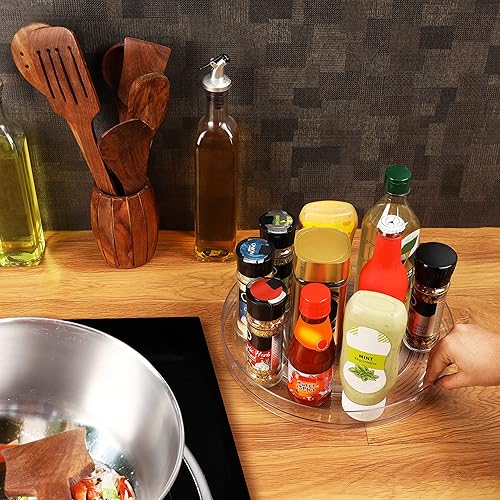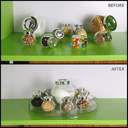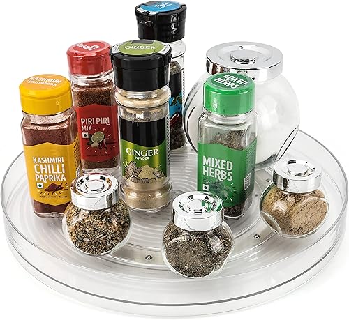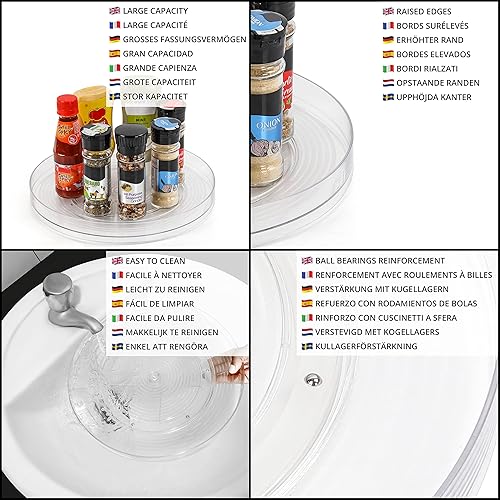 BELLE VOUS Plateau Tournant Placard Cuisine Transparent - Tourniquet Cuisine en Plastique de 29 cm - Pour Cuisine, Salle de Bains et Cellier - Plateau Tournant Épices, Condiments et Parfums