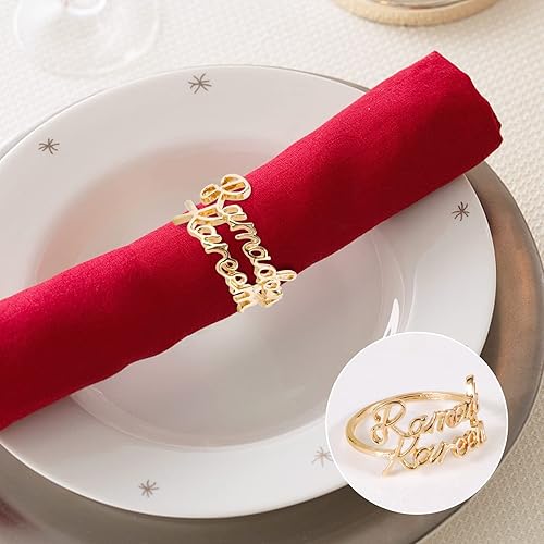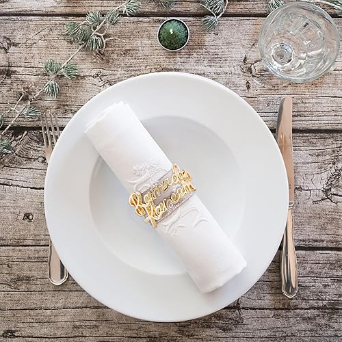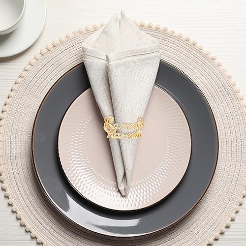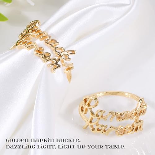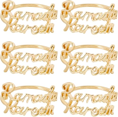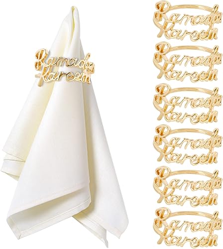 6pcs Boucles de Serviette Ramadan Kareem Doré Rond et Porte-Serviettes de Table Anneaux de Serviette Métal pour Musulmane décoration de Table à Manger pour la fête Mariage,Ramadan,Pâques,Thanksgiving