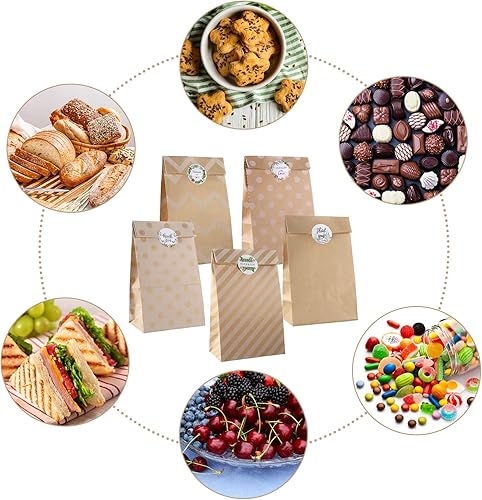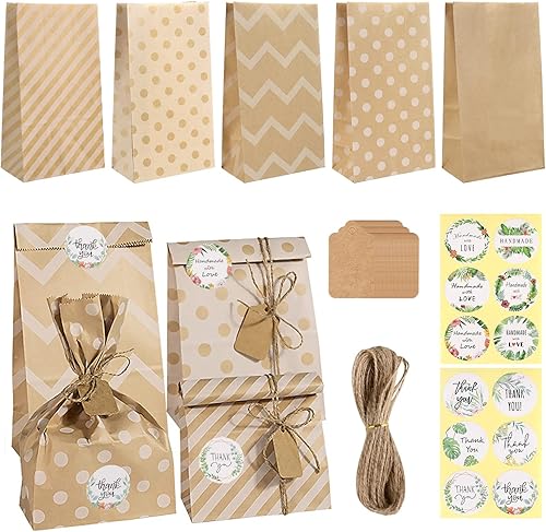 Czemo Sac en Papier Kraft 30 Pièces Pochettes Cadeaux en Papier avec Autocollants Sachet Papier pour Anniversaire Mariage Noël et Célébrations de Fête Marron