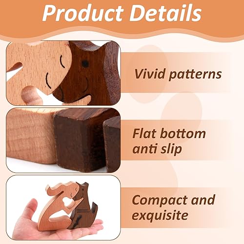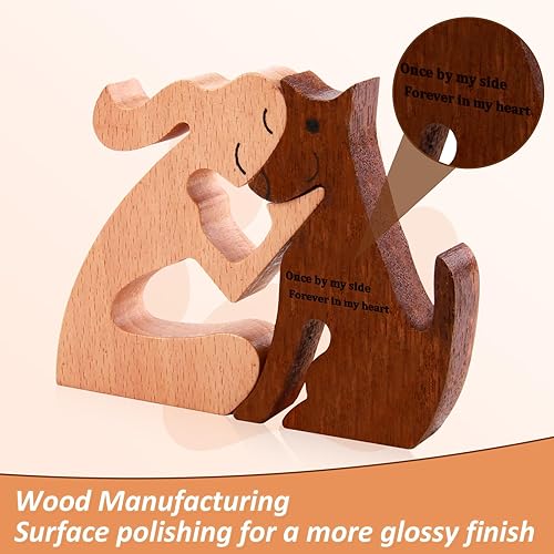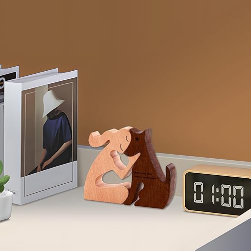 Cadeau pour Chien en Bois Fait à la Main, Statue de Chien avec Humain en Bois de Hêtre et Noyer, Décoration d'Intérieur Émotionnelle et Souvenir pour Amoureux des Chiens