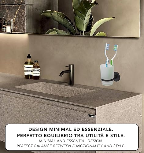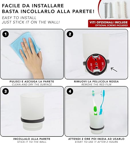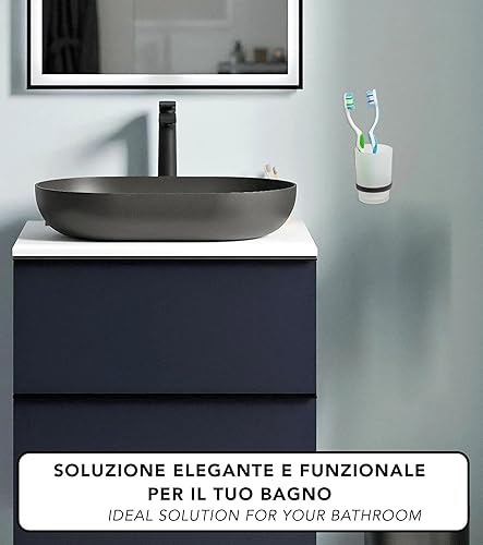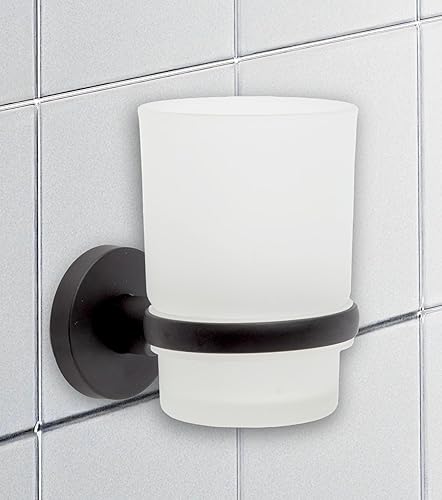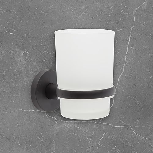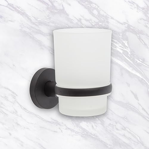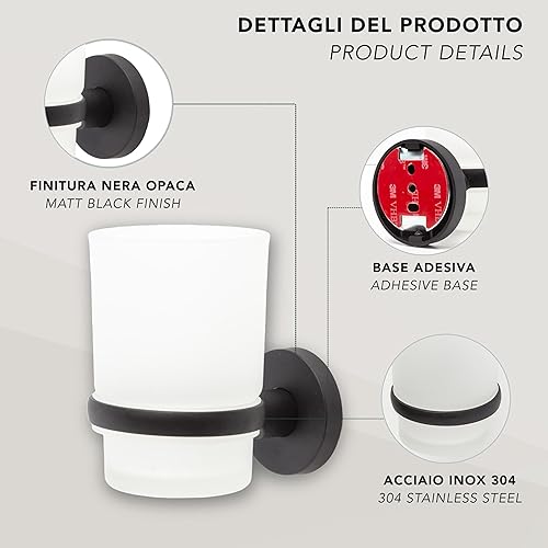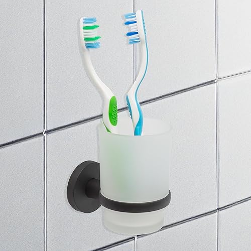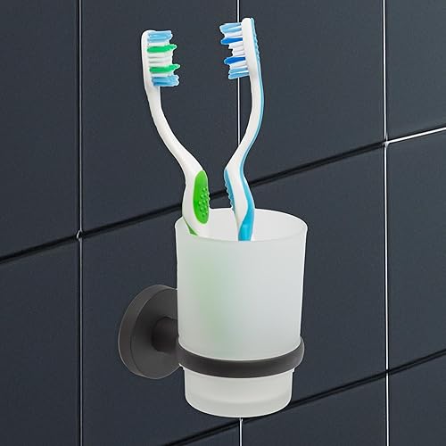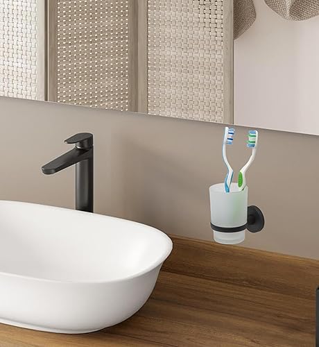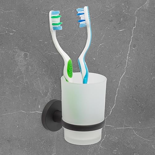 IPEA Porte Brosse à Dents Mural Auto-Adhésif Mural avec Gobelet – Pas Besoin de Perçage – Design Moderne – Élégant Porte-brosses à Dents et Dentifrice à Coller dans la Salle de Bain, Douche - Noir