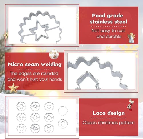 NEERIX 11pcs Emporte Piece Noel en Acier Inoxydable, emporte-pièces de Noël, mini emporte-pièces, pour Linzer biscuits, fondants, Fromage, Cookie, parfaits pour les pâtisseries festives