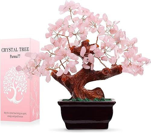 Feng Shui Natural Rose Quartz Crystal Money Tree Bonsai Style Decoration for Wealth and Luck