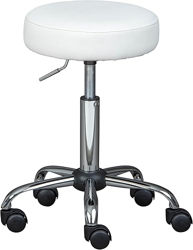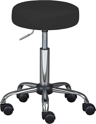 Inter Link - Tabouret pivotant sur roulettes - Réglable en hauteur 50-66 cm - Tabouret de travail/bureau - En métal et similicuir - Noir