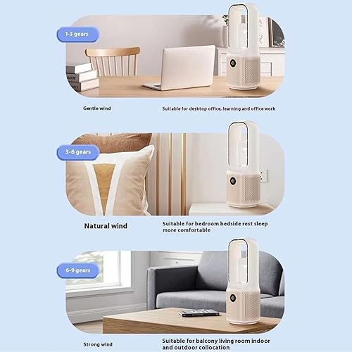 Ventilateur 3 en 1 sans pales avec purificateur, chauffage intérieur, ventilateur et chauffage Combo filtre tour HEPA, interrupteur basculant, oscillant à 90°