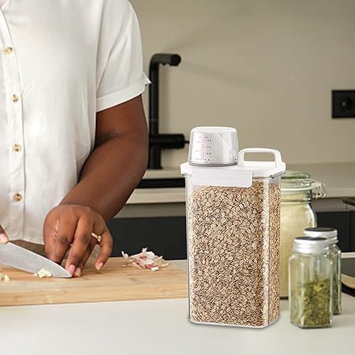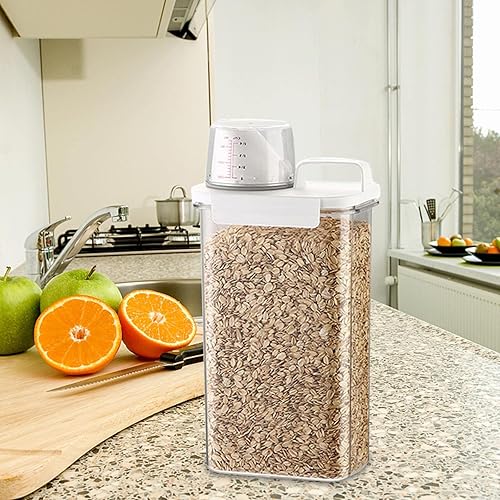 QUINTRA Distributeur de flocons d'avoine en plastique - Boîte de rangement pour cuisine, aliments, céréales, huile - Avec gobelet comptant - Cadeau (blanc, taille unique)