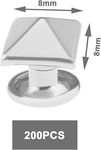 Lot de 200 rivets pyramidaux carrés pour loisirs créatifs, punk, bijoux fantaisie, accessoires de bricolage, décoration pour vêtements en cuir, chaussures, 8 x 8 mm
