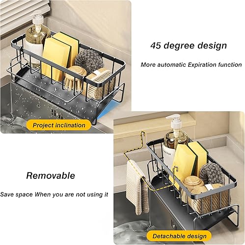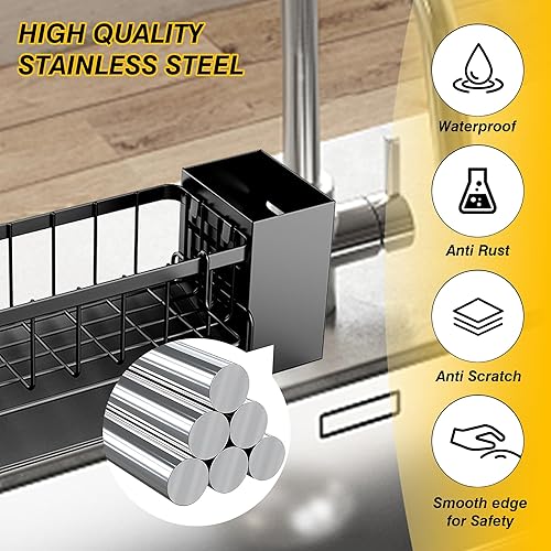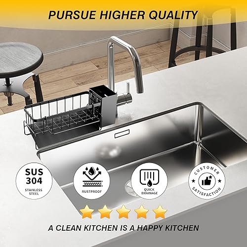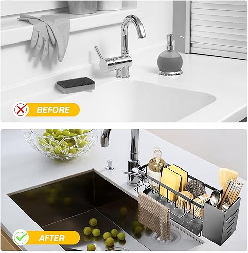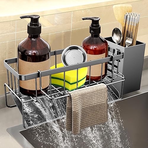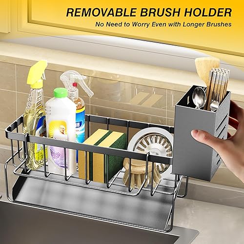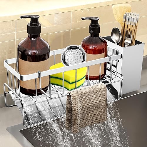 DBPBToU Rangement et Organisation de Cuisine, Porte Eponge Evier Cuisine Inoxydable, Organisateur Cuisine avec Support pour Brosse, Organisateur Evier Cuisine (Argenté)