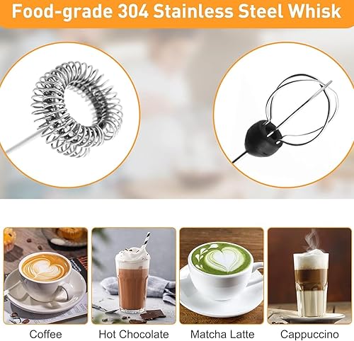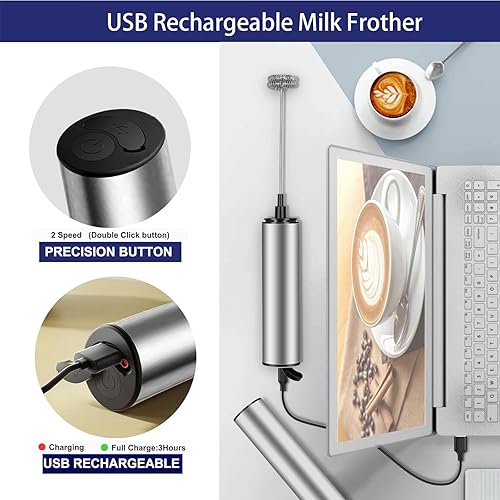 Mousseur à Lait Électrique, Mousseur à Lait en Acier Inoxydable, Mousseur à lait électrique portable, fouet mélangeur à mousse avec USB rechargeable 2 vitesses, mélangeur de mousse pour latte
