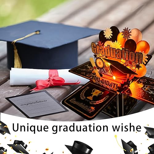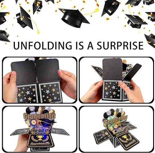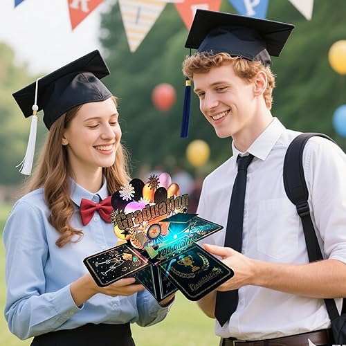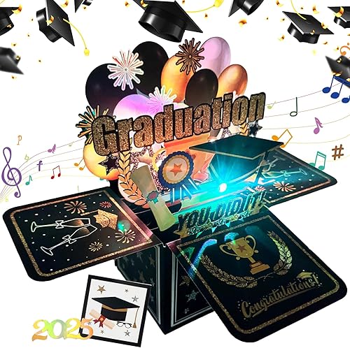 YOUYIKE Boîte Cadeau Remise des Diplômes Pop-Up 3D, Carte Musicale, Pop-up 3D Carte Avec Enveloppe et 2025 Autocollants, 2025 Bachelor Doctor Exam Master Doctor Abitur