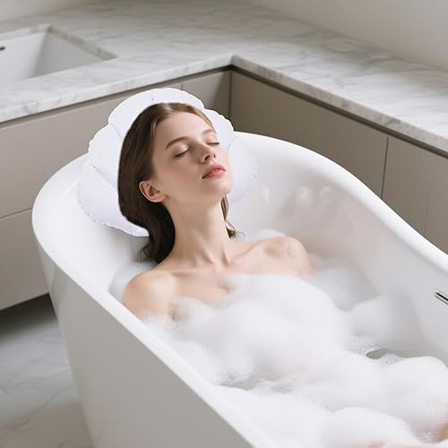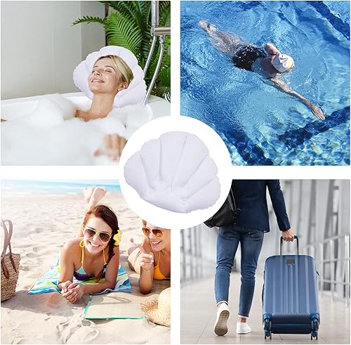 FDHBDF Coussin de bain gonflable en forme de coquillage blanc avec ventouses, coussin portable, convient pour les baignoires