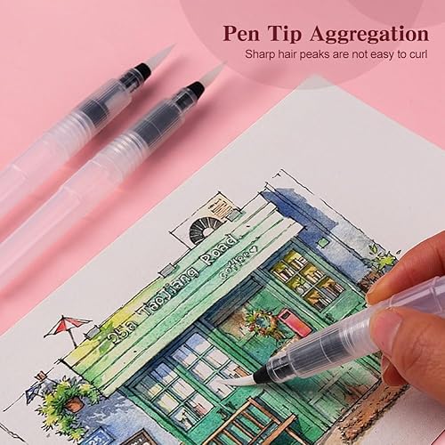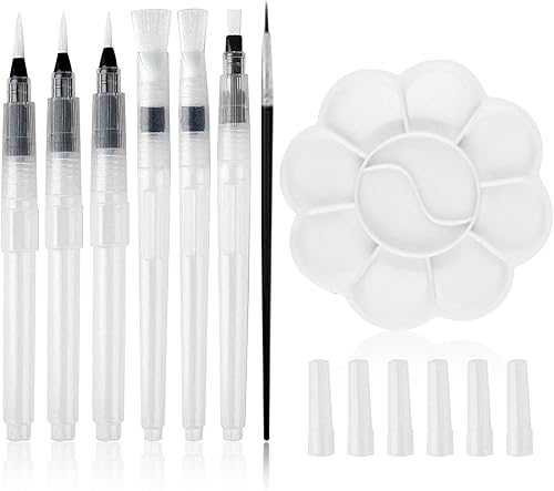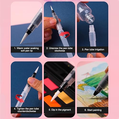 Mivanta 6 Pcs Stylos Pinceau à Eau, Aquarelle à Reserve d'eau Rechargeables, Peinture d'eau Brosse Brush Pen pour Le Mélange des Couleurs et la Calligraphie